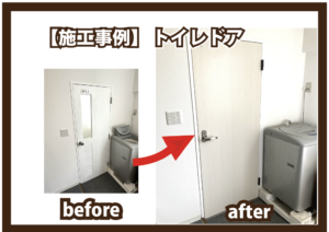 新しい丁番とドアノブも新しくなるので開閉もスムーズになりました。