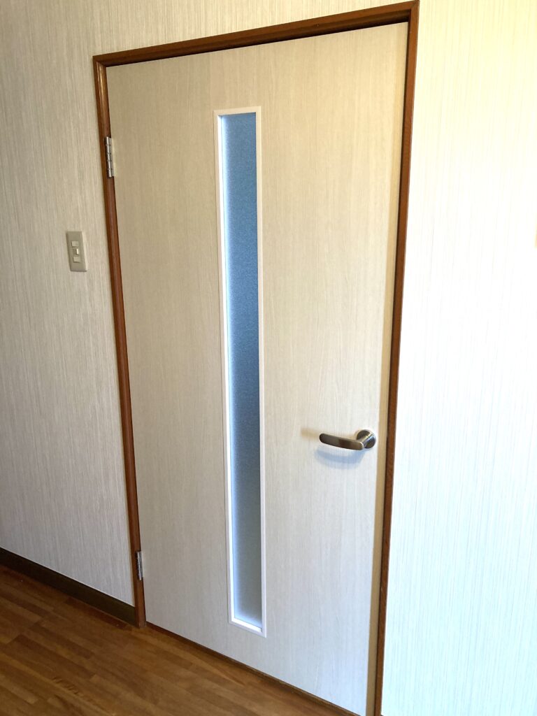 施工後は、ドアの真中に彩光が取れるデザインにしました。