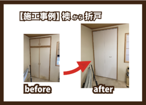 こんにちは、室内ドアのやすだです。今回は、襖から折戸への施工事例をご紹介します。